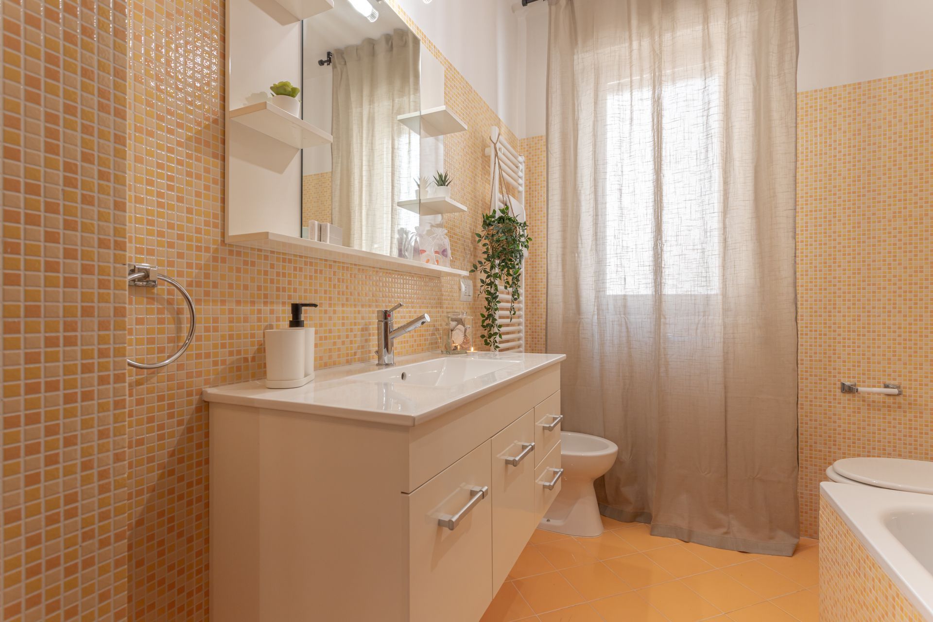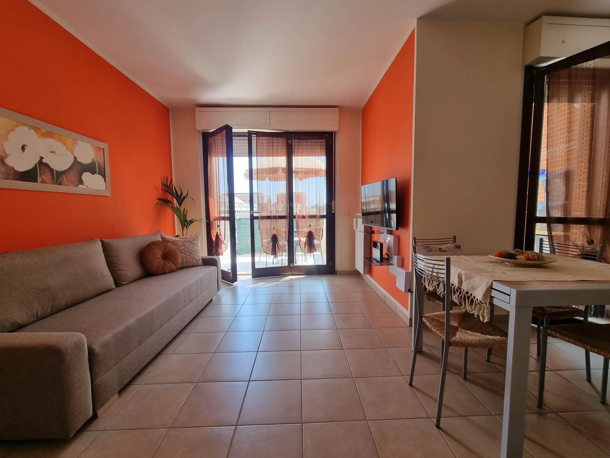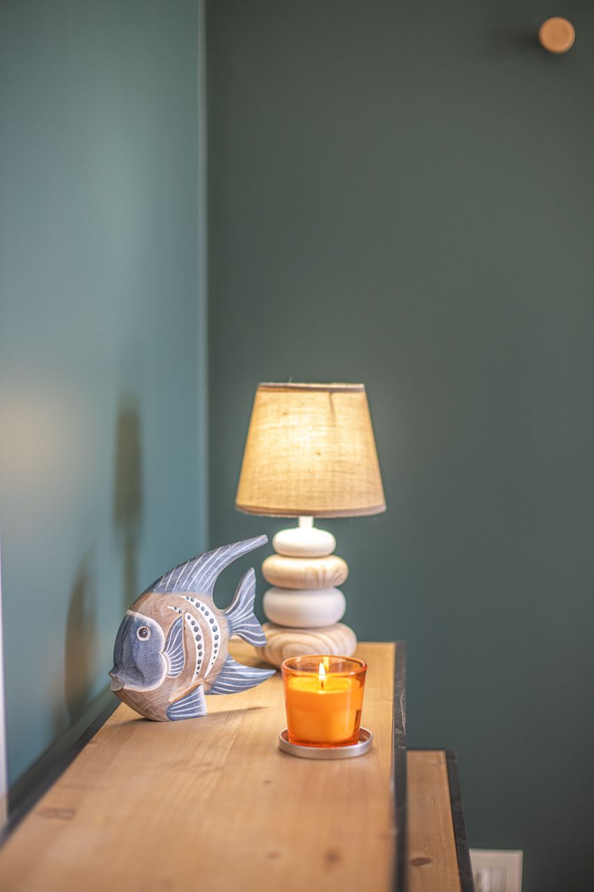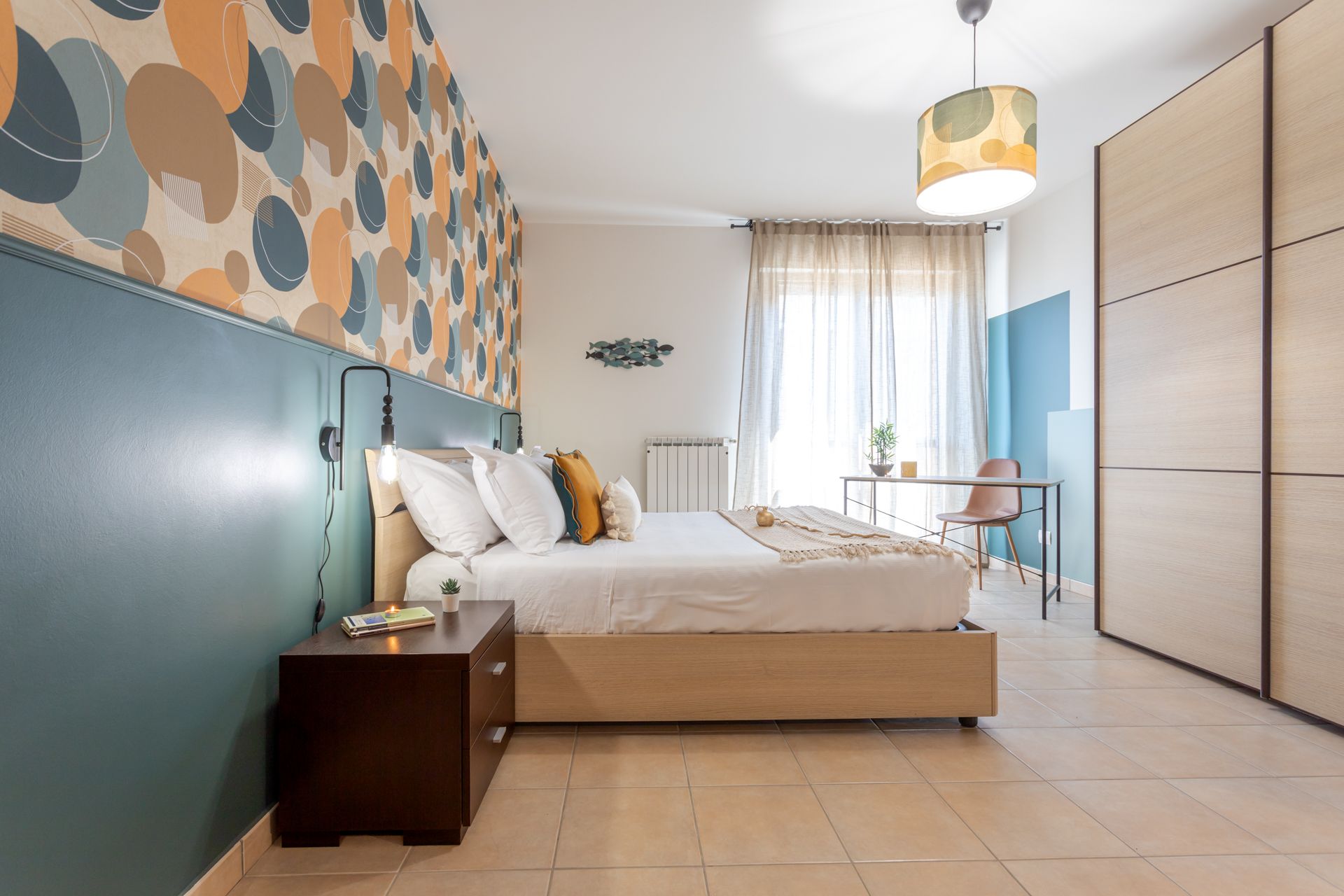 L’allegria e la leggerezza del mondo marino, unite all’atmosfera rilassata della spiaggia, sono state richiamate dalle scelte cromatiche di azzurri e toni neutri, bilanciati da arredi selezionati accuratamente. L’arancione regala energia e vitalità, il beige avvolge gli spazi in una dolce sensazione di calma e comfort. I toni del cobalto, invece, evocano la profondità del mare e la serenità del cielo, dando respiro a ogni stanza.